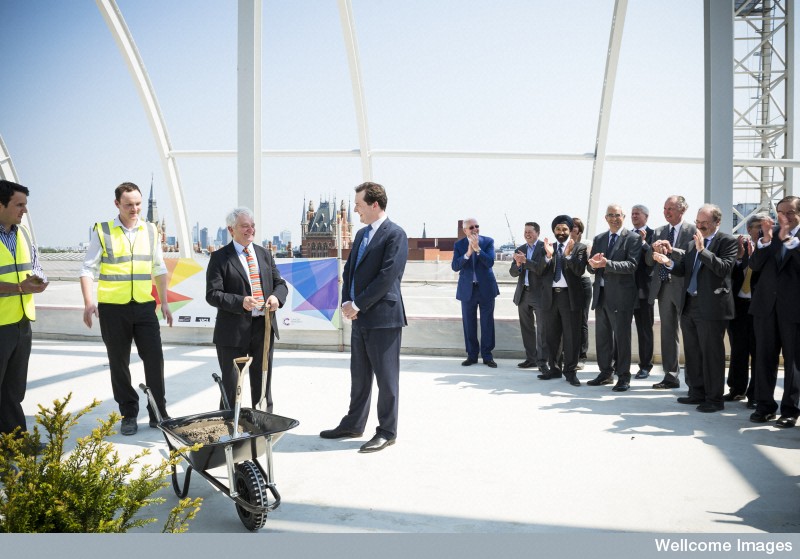 Yesterday, in the presence of Crick’s daughter, the Chancellor George Osborne, Minister for Universities and Science David Willets, and the Health Minister Earl Howe, a big step was taken towards making this a reality – the ‘topping out ceremony’ – celebrating the completion of the highest point of the new structure.