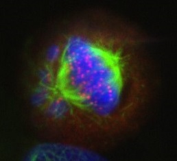 Cells divide for normal growth and repair, and to do this they double then split their DNA – their genetic blueprint. DNA is packaged into structures called chromosomes, and sometimes these chromosomes don’t get shared properly when a cell divides, which can lead to cancer. Cells have got ways to check that this doesn’t happen, but these can fail. We wanted to find out why they fail and what happens to the chromosomes that don’t get shared properly.