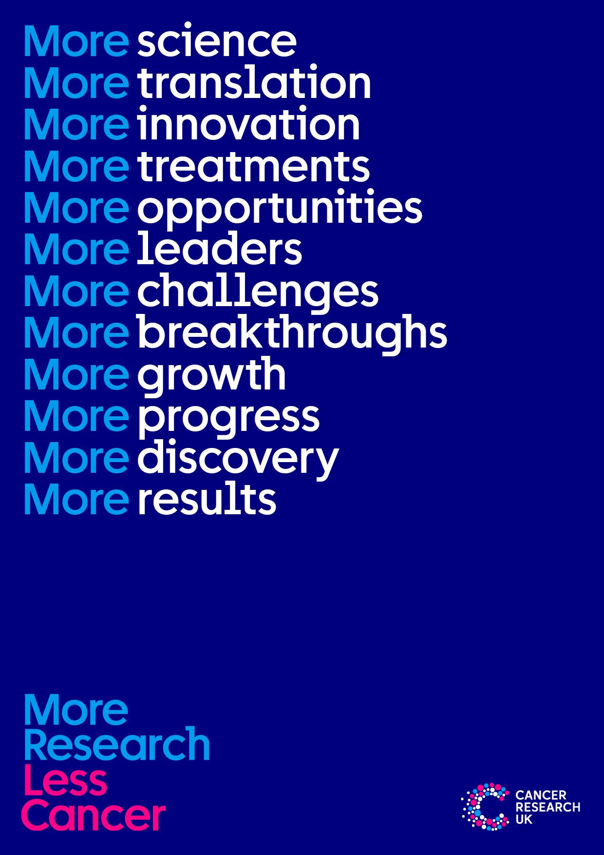 Through the More Research, Less Cancer fundraising campaign, we will raise £400m and 120 high value legacy pledges to: